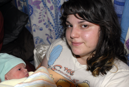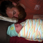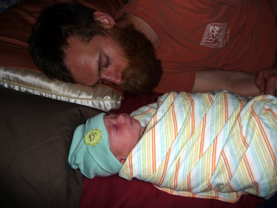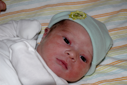 Poop, in case you where wondering, he had his first little poop today around 1:30, Daddy Ryan changed his diaper with some assistance from Auntie Izzy and Grandma. Right after Ryan changed him he pooped again. Through the whole process he didn’t cry once, he just looked around (he’s such a calm and content baby).  Right now Momma, Daddy and baby are all napping.
